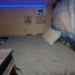 The comfortable couch is the size of a single bed, so solo travelers never have to set up the full bed if they don't need the extra space. Couples can quickly and easily slide the couch out to a cozy full-sized bed with a thick foam mattress. Take advantage of the large wall-mounted TV monitor to do mobile work on the road, or curl up for a movie at night.